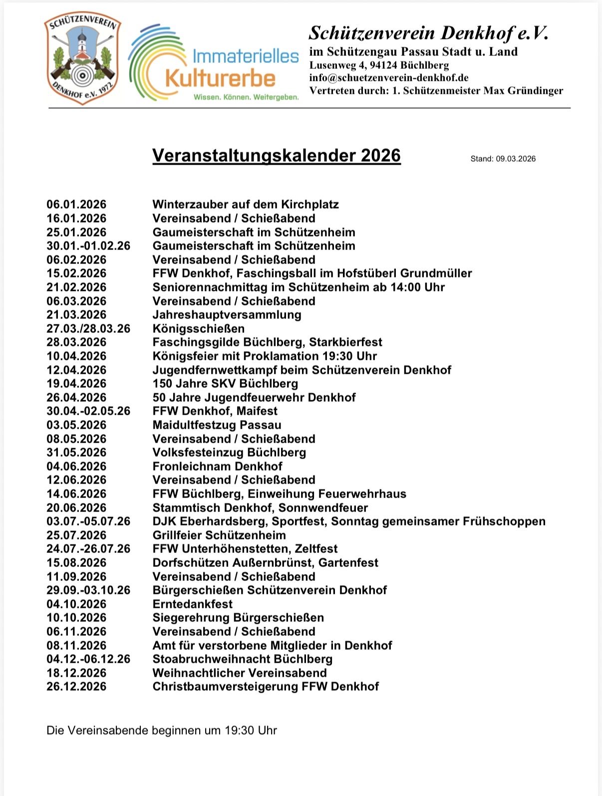 alle Termine für das Jahr 2026